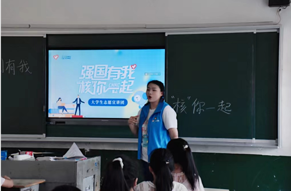 “强国有我,‘核’你一起”大学生志愿宣讲团成员声情并茂的讲述深深吸引了小朋友,神奇的核科技、神圣的核事业、神秘的核工业徐徐展开……“少年强,则国强”朗朗的读书声中,他们用实际行动做中华优秀传统文化、革命文化和社会主义先进文化的传播者。