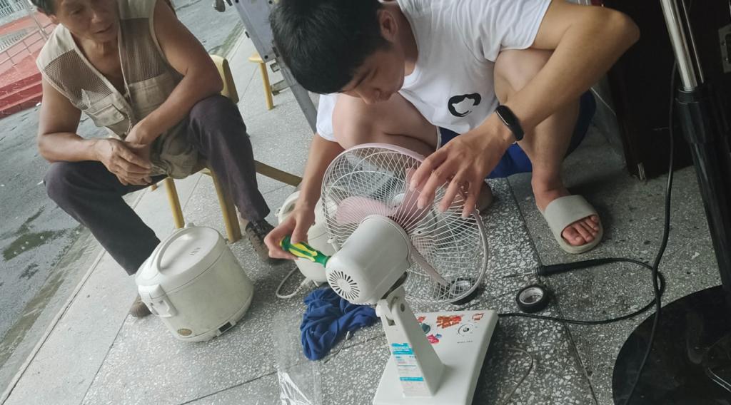 活动中,维修队员利用在校所学的专业知识,有步骤进行拆机、检测、查找设备故障,并进行调试维修。有的维修小组成员在走访村民时,将故障的电风扇扛回3公里外驻地进行维修,再将维修好了的风扇送回村民家中;更有远在龙山县的村民得知此次义务维修服务,将故障设备从龙山县送至维修点寻求帮助。短短的几天里,电器维修小队已义务开展电器维修累计超过30小时,为当地老百姓成功维修各类电器32件,给当地村民带去了便利。