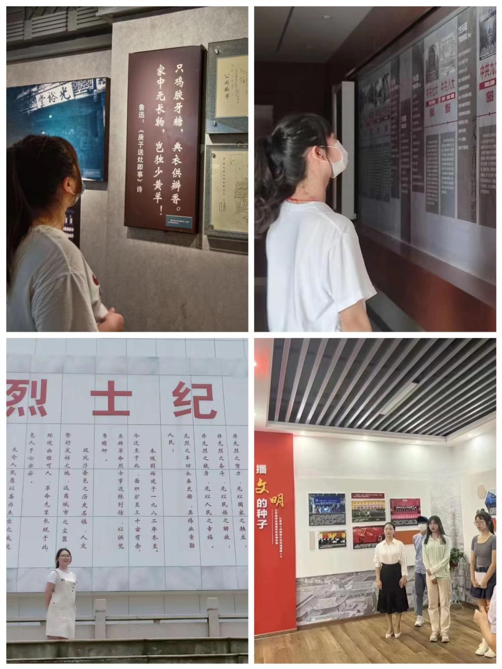 听一场红色故事,看一次红色展馆,成了这个暑假许多师生的共同回忆。商日2102何颖和李颖、胡金癸前往望城新时代文化实践中心了解雷锋同志的生平事迹;跨境电商2101班赵湘丽参观绍兴鲁迅纪念馆,听取中国近代文学史中的红色记忆;电商2107班王爽前往湖南省永顺县塔卧镇,进入湘鄂川黔革命根据地,参观了烈士纪念碑、省军区旧址以及省委旧址……学院师生们前往的红色史迹遍布湖南省内外各地,师生在各个红色展馆听取红色故事,寻访红色记忆、缅怀革命先烈,通过零距离参观学习,广大师生在实际中了解党的历史,传承红色文化,培育家国情怀。