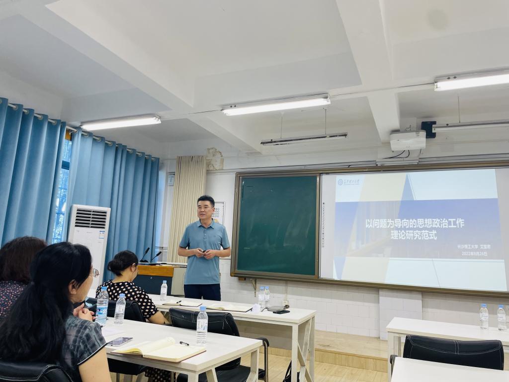 为全面部署新学期教学工作,通过培训赋能,提升育人本领。8月26日上午,马克思主义学院(以下简称马院)召开新学期第一次全体专兼职教师会议。会议以“守正创新 尽责担当 同向同行 续写荣光”为主题,马院主要负责人进行工作小结和新学期教学等工作布置,教师代表进行暑期培训学习经验分享,并邀请长沙理工大学教授艾楚君进行专题讲座。