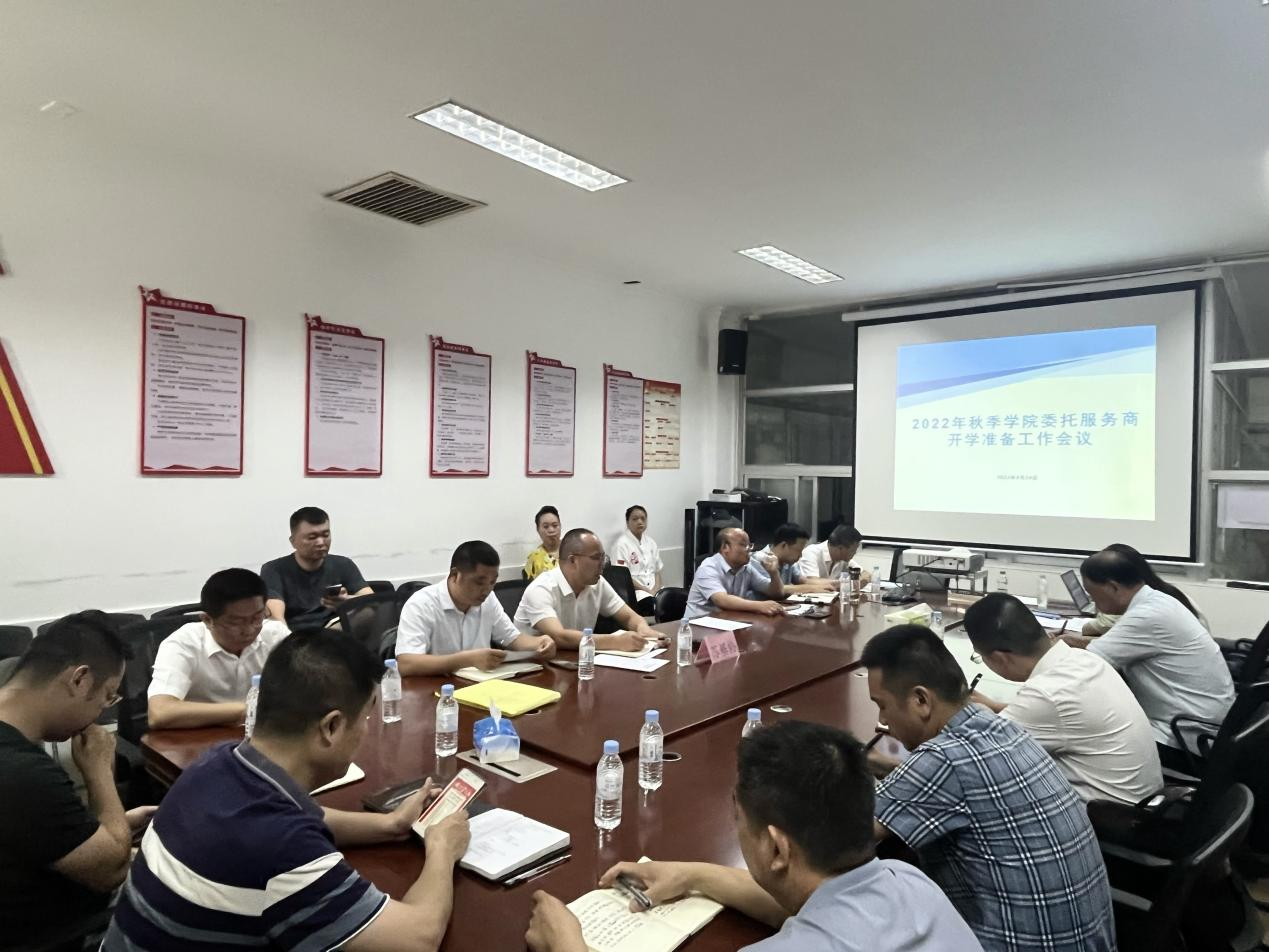 8月24日上午,best365官网组织召开2022年秋季委托服务商开学准备工作会议,党委副书记苏基协出席会议,相关部门负责人及各委托服务公司负责人参加。