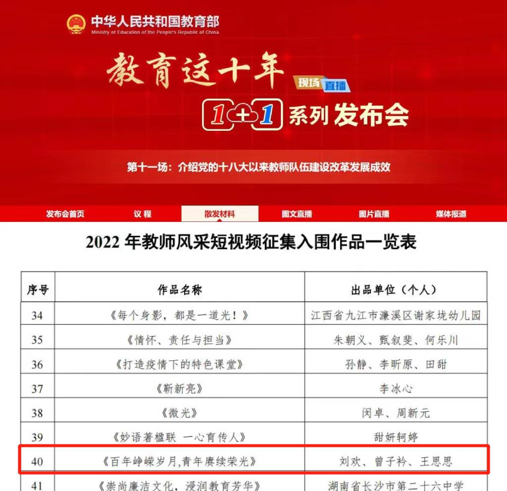 据悉,2022年教师风采短视频征集活动由教育部教师工作司指导,中国教育电视台主办,旨在宣传和展现新时代教师阳光美丽、爱岗敬业、无私奉献、成绩凸现的良好形象,在全社会进一步营造崇德向善、尊师重教的浓厚氛围。