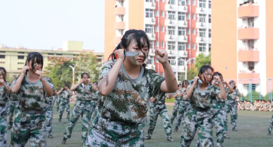 新生军训内容除了常规的队列之外,还安排了匕首操、手语操方阵、匍匐刀、擒敌拳、倒功等一些特色项目,并将修正行为习惯的内务整理、仪容整理等养成教育项目搬到军训场地。200人组成的匕首操方队均为女生,在训练中,每一次嘹亮的呐喊、每一次利落的匍匐倒地、每一个刺杀动作同学们都高标准且整齐一致地完成,尽显英姿飒爽的巾帼风范。在军训结束之后许多匕首操方阵的同学不约而同地递交了加入学校雷锋教导团的申请,同学们纷纷表示:“最初以为军训会非常枯燥无味,但这次军训设置了丰富多彩的项目,让我们学在其中、乐在其中,同时也体会到了服从命令、听从指挥、团结互助的重要性。”