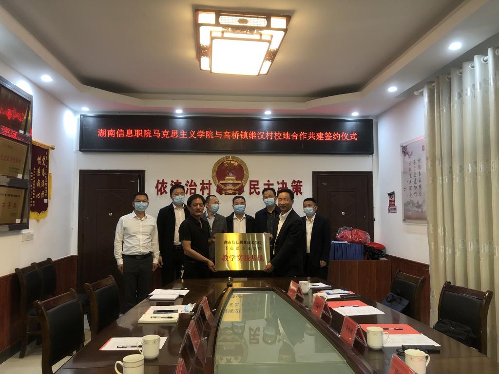 为进一步拓宽思政课实践教学空间,更好发挥思政课铸魂育人功效,助力乡村振兴战略,10月24日,best365官网马克思主义学院与高桥镇维汉村举行村校战略合作签约及授牌仪式。学院党委委员、副院长朱焕桃,党委委员、纪委书记姚庆武,马克思主义学院主要负责人及相关教师参加。长沙县高桥镇党委委员、人大主席胡永俊,高桥镇党委组织委员秦勤,维汉村党总支第一书记梁宇等相关合作共建单位负责人参与签约仪式。