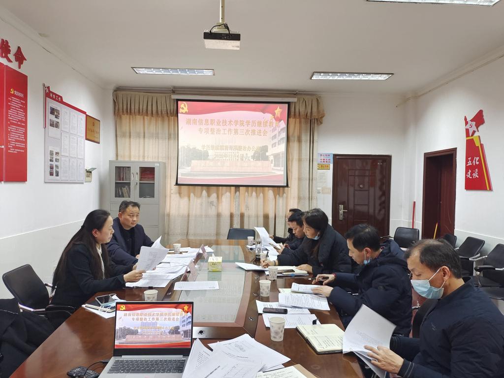 为贯彻落实省教育厅《关于进一步深入学习推进全省高等学历继续教育专项整治工作实施方案》和《关于做好湖南省高等学历继续教育专项整治工作信息报送工作的通知》,12月6日下午,best365官网召开了高等学历教育专项整治工作第三次推进会议,副院长刘志红、纪委书记姚庆武出席会议,纪检监察处、财务处及继续教育学院相关负责人参加会议,会议由专项整治办公室主任徐四军主持。