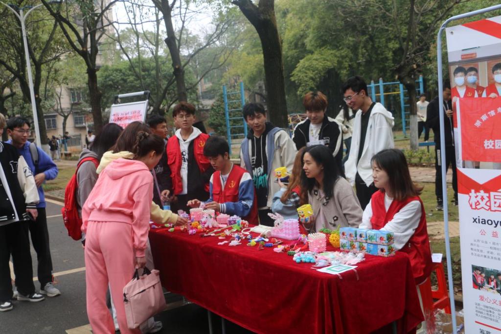 展台上摆满了残障人士亲手制作的天使熊、双层玫瑰、小福袋、手机包、流氓兔等手工艺卖品,这些手工艺品的制作工时最少需要花费两小时,最多的甚至历时一周才能完成。在志愿者们的大力宣传之下,路过的同学们纷纷驻足脚步,对手工艺品进行挑选,来参观和购买的同学络绎不绝,义卖现场可谓“生意”兴隆。在同学、老师和义卖活动志愿者们共同的努力下,爱心义卖总金额已达上千元。据悉,义卖筹集到的资金将全部交给长沙市芙蓉区欣心翼精神康复中心会所,作为残疾人手工艺品的报酬。