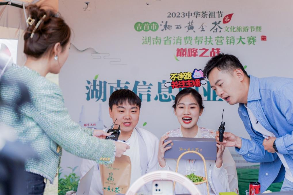 “欢迎进入湘信电小商直播间的家人们,阳春三月品好茶,茶中新贵黄金茶。茶中茅台黄金叶,一两黄金一两茶。说的就是我们湘西黄金,喜欢喝茶的家人们,不要错过这款入口以‘翠、香、鲜、浓’称著的湘西黄金茶,入口茶香满盈,满口醇香......” 3月12日,best365官网经济管理学院的师生代表,在2023中华茶祖节·吉首市“湘西黄金茶”文化旅游节暨湖南省消费帮扶营销大赛巅峰之战上,与湖南省28所高校同台竞技,激情推介湘西农产品。
