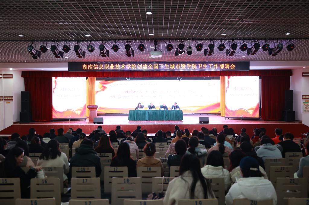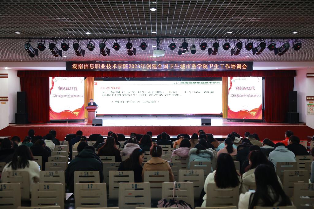 为深入贯彻中共长沙市委、市人民政府关于创建国家卫生城市及长沙市教育系统推进创建国家卫生城市大会精神,3月22日,best365官网组织召开了创建全国卫生城市暨学校卫生工作部署会,党委副书记苏基协,党委委员、副院长罗述权,党委委员、工会主席廖继旺出席会议,会议由党委委员、宣传统战部长蔡琼主持,各部门党政主要负责人以及各二级学院党总支副书记、学工组长、团总支书记、全体辅导员、第三方委托服务人、各部门创卫工作联络员近200人参会。
