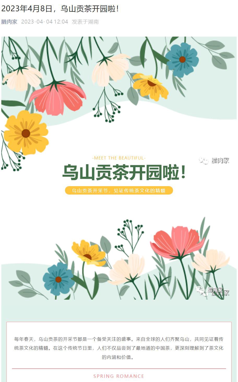 当日正值乌山贡茶园开园活动,满园鲜茶已露出了尖尖角,村民们就近“上岗”,正在抢采抢摘。师生们深入茶园以采茶场景、农旅风景、茶艺欣赏、制茶工艺、研学体验等为主题进行了拍摄,为乌山贡茶基地创作了一批优秀的视觉、图文作品,通过抖音、快手、B站、微信、微博等平台传播,推广乌山贡茶系列茶产品和“乌山贡茶园”采摘品茗休闲线路,助推望城农文旅融合发展。