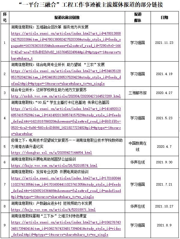 通过“一平台三融合”工程实施,学院以电子商务专业的特色与优势为依托,建立了良好的学校与乡村之间长效助农、兴农联动效应。2022年,电子商务专业《实施“133数商”行动,消费帮扶赋能美丽乡村》案例成功入选湖南省教育厅“第五届省属高等院校精准帮扶典型项目”。