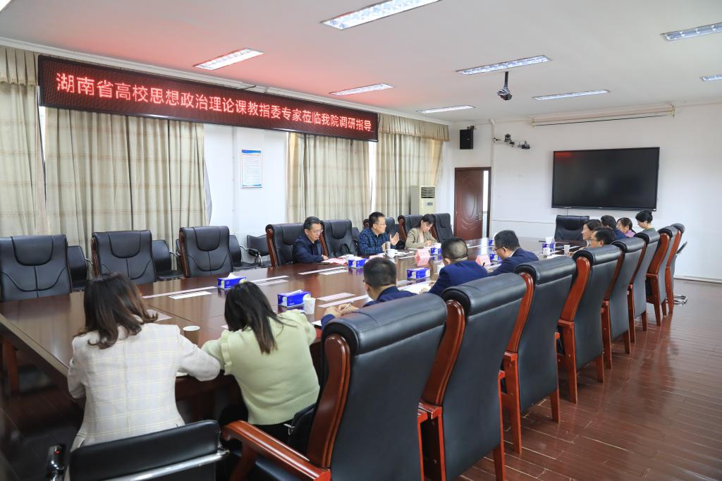 5月11日下午,湖南省高校思想政治理论课教学指导委员会专家南华大学马克思主义学院院长黄秋生教授、衡阳师范学院马克思主义学院院长彭斌教授、衡阳师范学院思政课教师罗丹一行莅临best365官网调研指导,学院党委书记贺代贵,党委委员、副院长朱焕桃,党委委员、宣传统战部部长蔡琼及马克思主义学院负责人参加调研。
