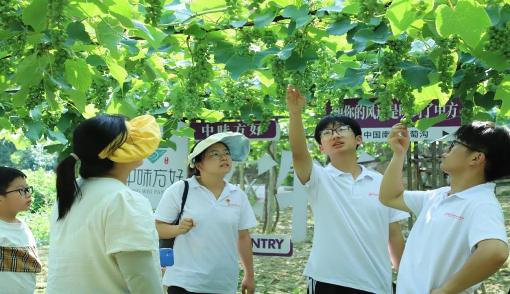正式调研前,小分队深入村庄对当地特色农产品、农产品销售等问题进行了问卷调查和实地考察,了解当地经济产业发展情况。在实地调研过程中,参观了刺葡萄核心基地和南方葡萄沟酒庄,了解了其发展历史、主营产品、核心技术与营销策略,并与葡萄园相关负责人探讨交流农业发展与产业发展的现状和挑战,提出“发展本地特色产业,打造集种植、采摘、田园体验、休闲旅游为一体的乡村旅游集散地”建议,助力乡村振兴。