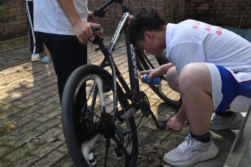 志愿者为当地村民修理自行车