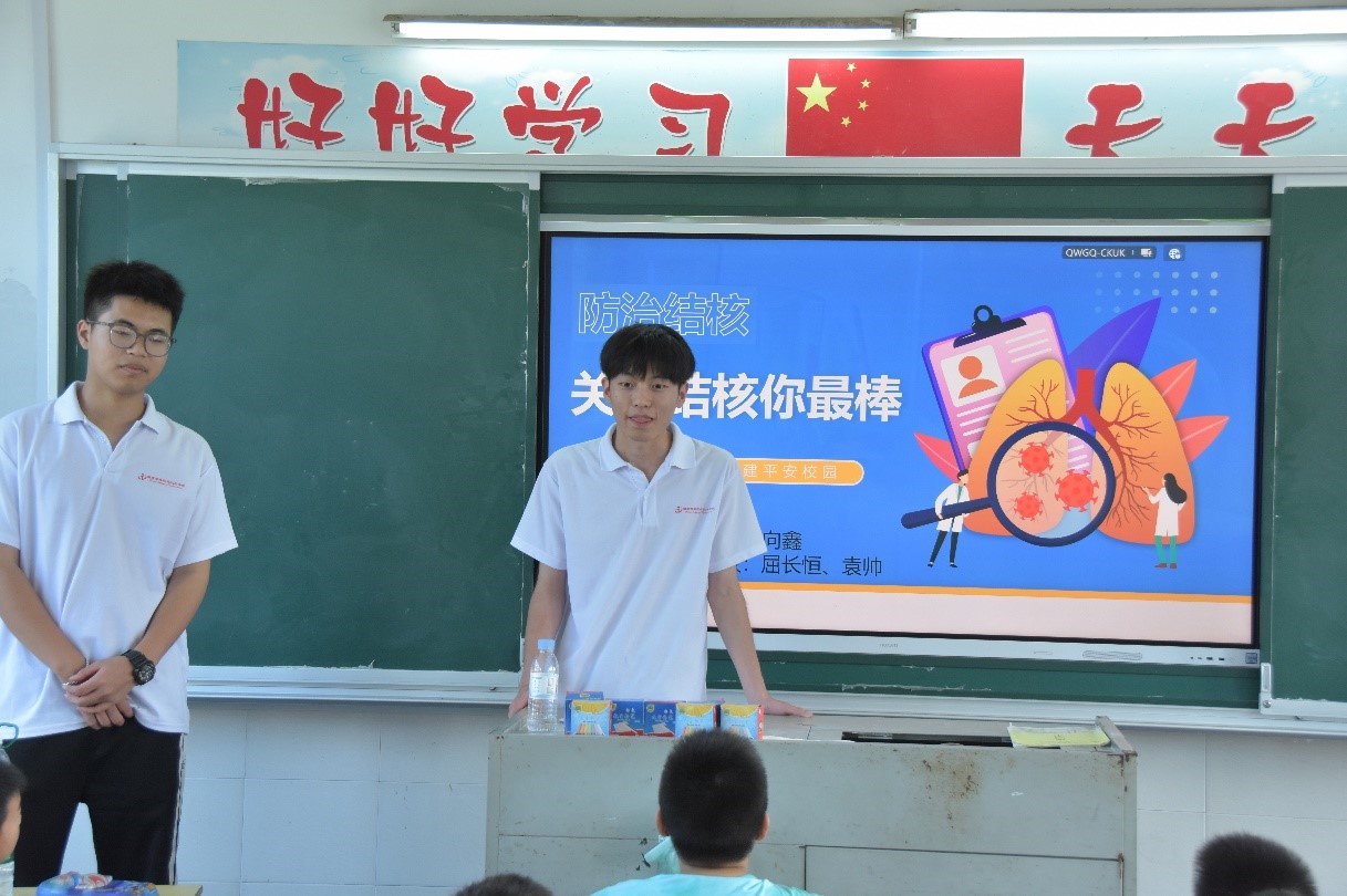 不仅是走访入户,在“七彩假期”的课堂上,志愿者给农村小朋友普及防治结核的相关知识,采用情景化的创设让小朋友们身临其境地了解了结核病的传播途径、个人日常防护指南等常识,深刻感受到预防结核病的重要意义。