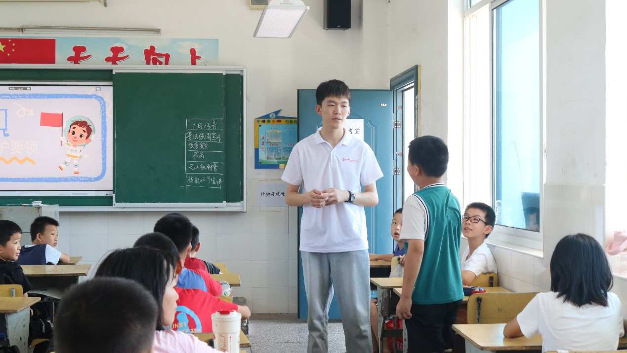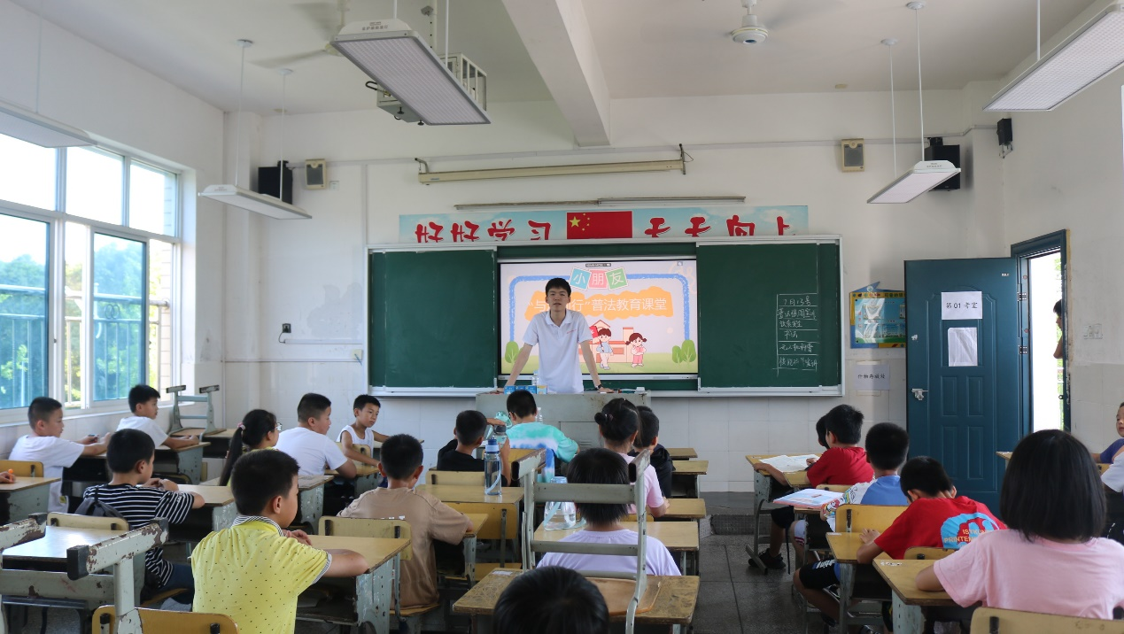 为增强学生的法律意识,提高他们的自我保护意识,营造文明、平安、和谐的校园育人环境,7月13日,best365官网暑期“三下乡”社会实践活动的理论宣讲组志愿者们在普法教育的课堂上,引导小朋友们做一名知法、懂法、学法、守法的好公民。