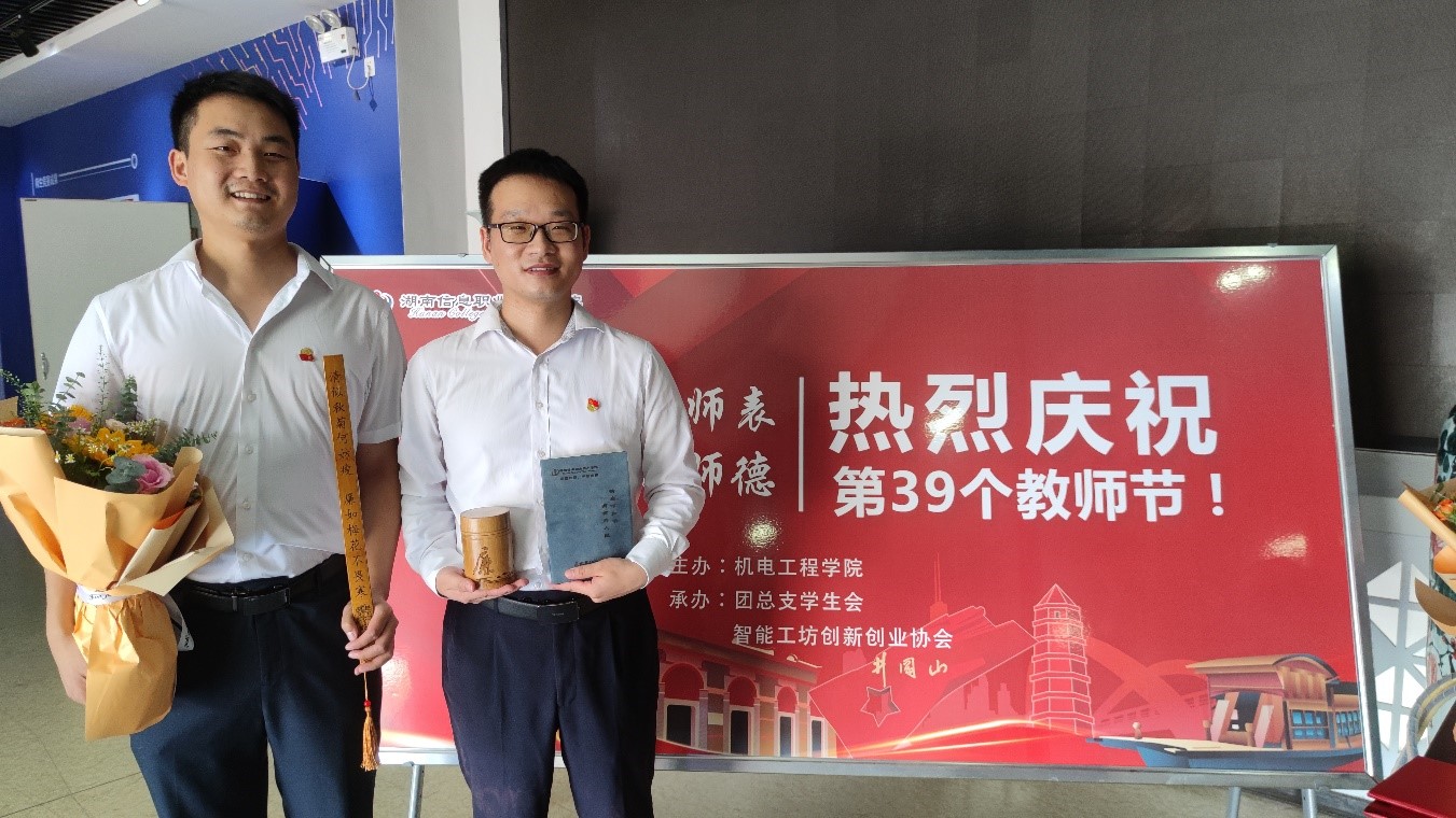 “饮其流者怀其源,学其成时念吾师”,9月8日,在第三十九个教师节来临之际,为继承中华民族优良传统,营造“尊师重教”的良好氛围,坚守技能强国初心,提高技能水平与创新能力,机电工程学院智能制造工坊创新创业协会的学生们精心筹划第三届教师节主题活动,同学们合理安排课余时间,利用专业所长硬核献礼,为辛勤的教师们送上一份真挚的节日祝福,用新意传递心意。