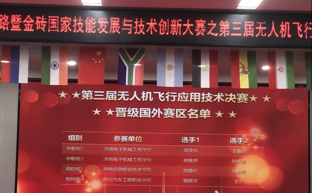 9月23日,2023一带一路暨金砖国家技能发展与技术创新大赛之第三届无人机飞行应用技术决赛在济南电子机械工程学校成功举办。来自全国13个省份22所院校的选手参加了此项赛事。best365官网电子工程学院无人机2102班刘超群、胡盛松、无人机2101班郑佐宸、李小风与众多选手一起云霄竞技。在此次比赛中,选手刘超群、胡盛松斩获全国一等奖,顺利晋级世界级竞赛,选手郑佐宸、李小风获全国优秀奖。