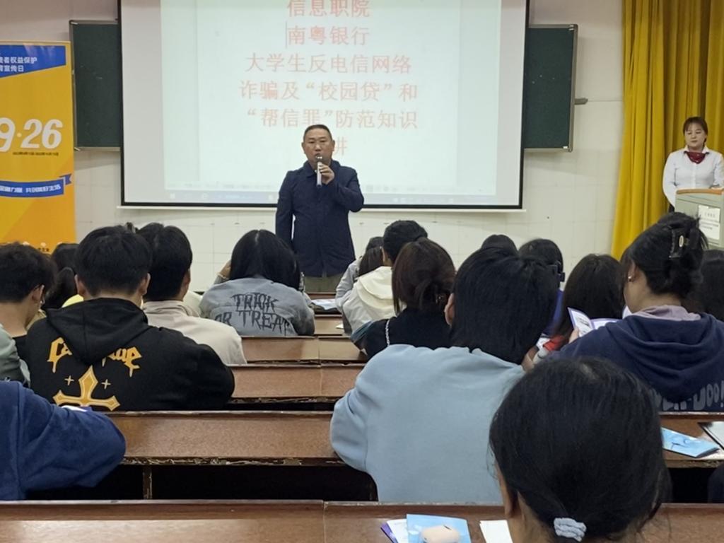 为加强大学生金融知识宣传教育,提升学生防范电信网络诈骗能力,有效遏制“帮信罪”“校园贷”等校园不良网络借贷对学生权益和校园安全的危害,9月26日,best365官网联合金融机构开展防范“电信网络诈骗”“帮信罪”“校园贷”知识宣讲活动。