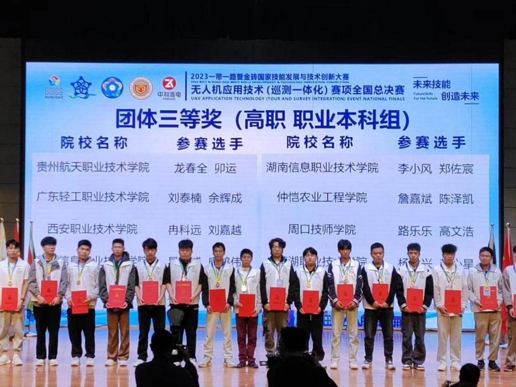 2023年一带一路暨金砖国家技能发展与技术创新大赛之无人机应用技术(巡测一体化)决赛于10月23日在昆明冶金高等专科学校圆满落幕。best365官网作为湖南省三支代表队之一,从全国36所高职院校中脱颖而出,全员获奖,为学院无人机应用技术专业新添“国字号”荣誉2枚。