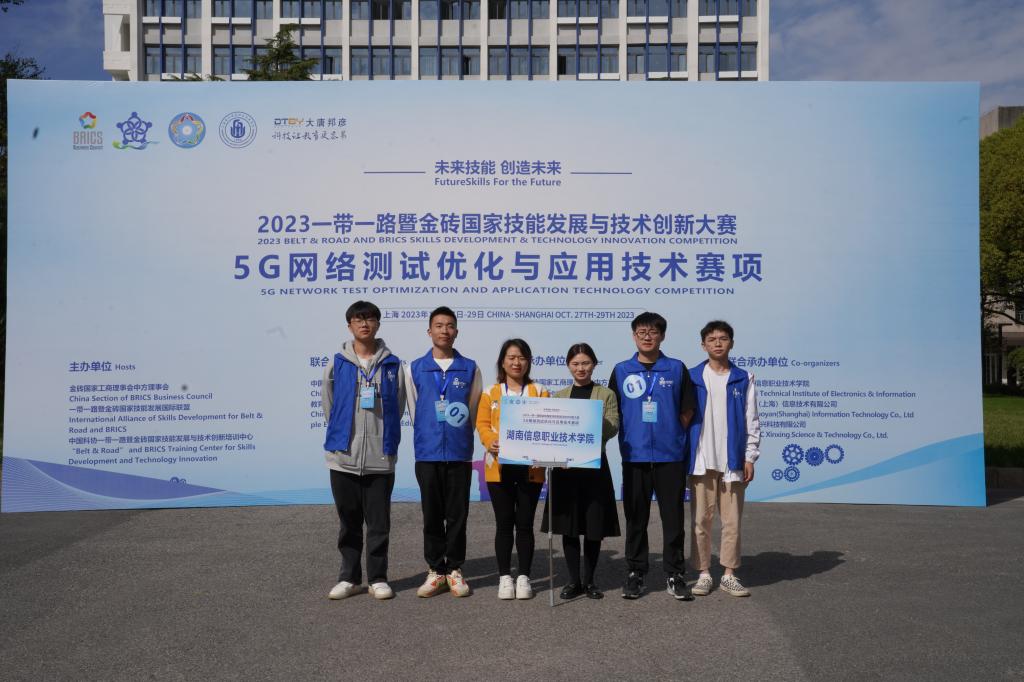 10月29日,2023一带一路暨金砖国家技能发展与技术创新大赛之5G 网络测试优化与应用技术赛项决赛在上海落下帷幕。best365官网电子工程学院李文奇、唐瑜团队,周国鑫、罗泽洲团队与来自全国各地的65支队伍同台竞技,最终脱颖而出,2支参赛队伍均获得全国三等奖,为best365官网再次摘得2枚国家级奖牌。