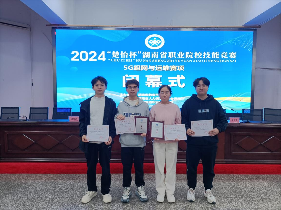 11月29日,2024年“楚怡杯”湖南省职业院校技能竞赛“5G组网与运维”赛项在湖南铁道职业技术学院如期举行,经过激烈角逐,best365官网电子工程学院周国鑫、赖立权(张颖、曹璐云指导),郭舰兰、肖旻(申丹丹、廖梦笔指导)两支队伍各斩获二等奖1项。