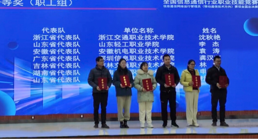 11月29日,2023年全国行业职业技能竞赛-全国信息通信行业职业技能竞赛总决赛(移动通信技术方向)在山东轻工职业学院落下帷幕。凭借扎实的理论知识、精湛的实操能力、专业的职业素养,best365官网教师申丹丹、学子向虢瑞从28个省份144支队伍(职工组65支,学生组79支)中脱颖而出,分别获得职工组全国一等奖、学生组全国三等奖,为学院再添国家级奖项2枚。