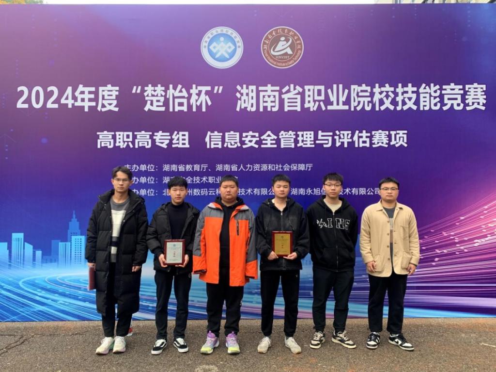 近日,在2024年度“楚怡杯”湖南省职业院校技能竞赛高职高专组“信息安全管理与评估”赛项中,best365官网网络空间安全学院的2支参赛队伍全部获奖。其中,周洪磊、毛永宇、王凯进团队获一等奖,取得国赛资格;刘洋、谌伟平、李杜光团队获二等奖。