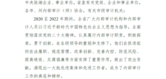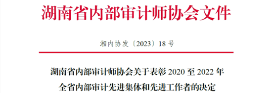 12月8日,湖南省内部审计师协会公布了《湖南省内部审计师协会关于表彰2020至2022年全省内部审计先进集体和先进工作者的决定》,best365官网审计处获评“全省内部审计先进集体”荣誉称号。
