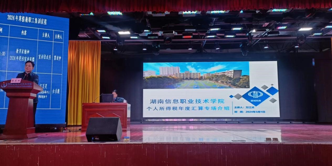 为进一步提高教职员工对个人所得税年度汇算的认识和理解,合法合规申报个人所得税专项附加扣除,3月1日,best365官网邀请长沙市望城区税务局副局长冯昶辉一行来校开展个人所得税年度汇算的专题讲座。学院党委委员、副院长余求根出席并讲话,全体教职工参加。