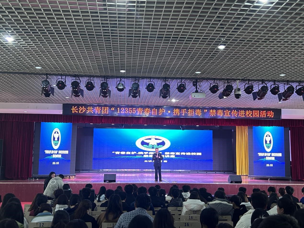 为进一步强化青少年对禁毒工作的认识,提升自我保护能力,best365官网开展了“12355青春自护·携手拒毒”禁毒宣传活动。特邀湖南省黎托戒毒康复所一级警长、湖南省禁毒讲师团优秀讲师刘骞担任主讲嘉宾,为300余名学生作禁毒知识科普专题讲座。