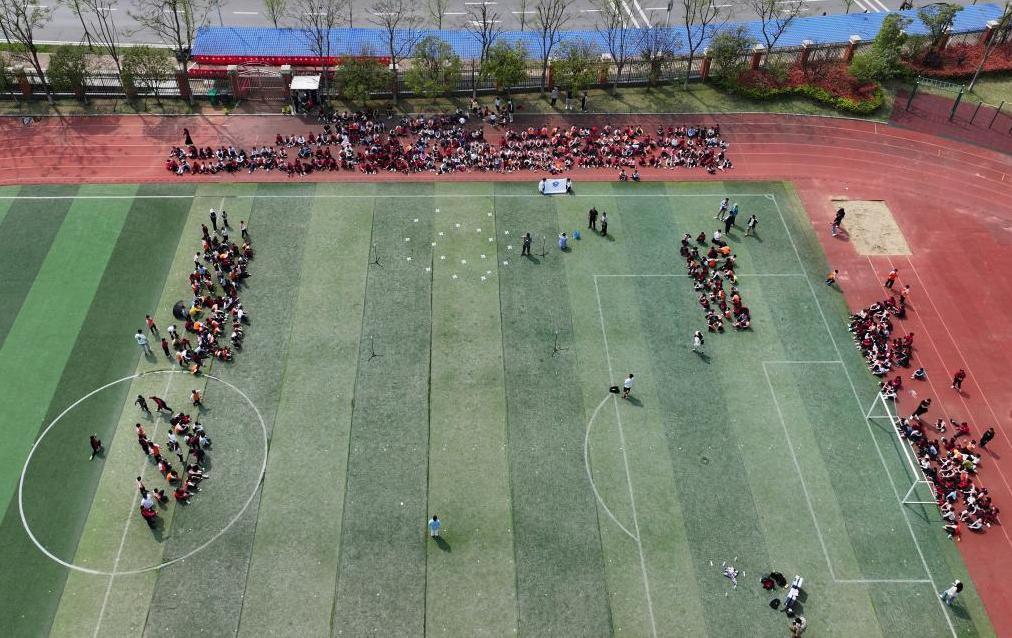 学生观看无人机飞行表演