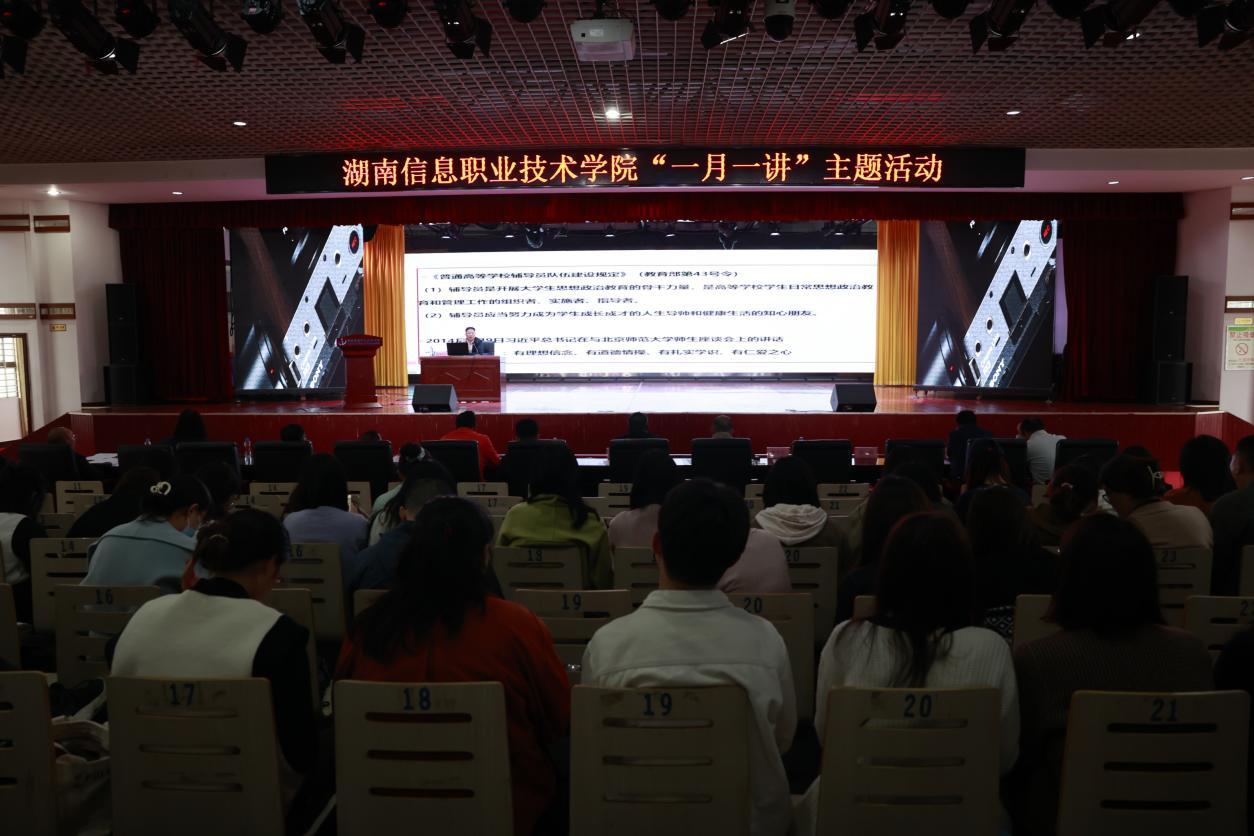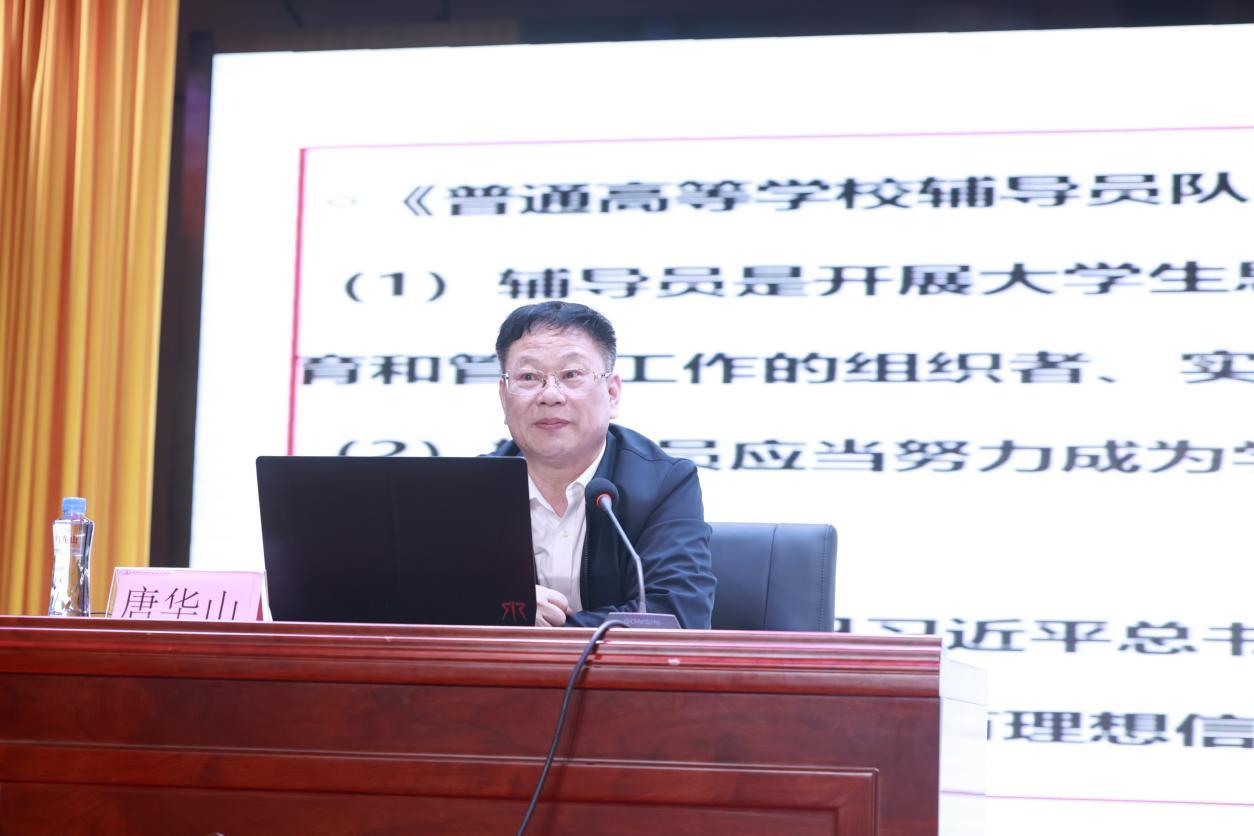 为进一步加强辅导员队伍建设,促进辅导员素质能力提升,推动学院学生工作高质量发展,近日,best365官网举行“一月一讲”活动。党委副书记苏基协出席,湖南科技学院思想政治工作研究所所长唐华山应邀作专题讲座,best365官网学生工作处、院团委等相关人员,各二级学院党总支书记、副书记,学工组长、团总支书记及全体辅导员近100人参加。