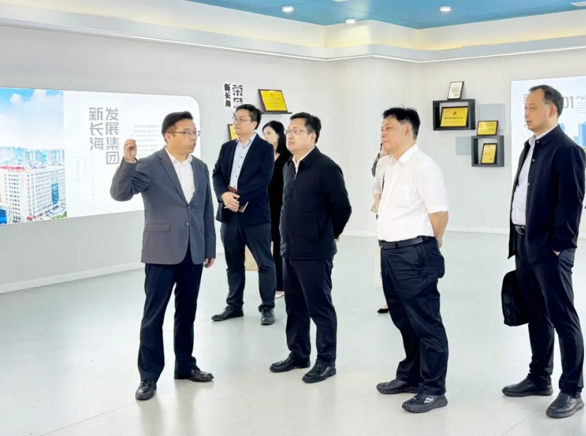 贺代贵一行参观了新长海发展集团企业展厅,实地了解企业文化、发展历程、业务布局、未来规划及前景等。