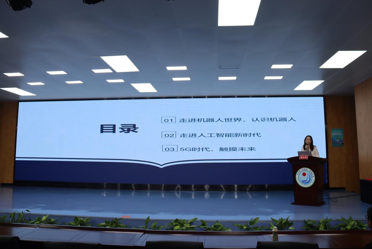 在主题科普课堂中,智能感知与控制“楚怡”名师工作室负责人以“走进机器人与人工智能新时代”为主题,深入浅出地阐述了机器人的起源与演进、人工智能技术的跨界应用、5G技术对创新科技的推动作用。她借此机会向在场的五年级学生和通过视频连接参与的全校师生展示了科技发展的无限可能,并鼓励大家拥抱技术、激情创新。