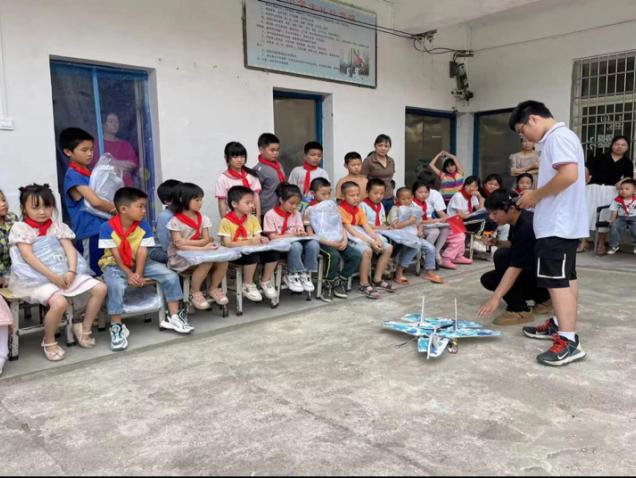 在祁东县太和堂镇良村学校公益科普及学习用品捐赠活动现场,学院百趣公益科教团队带领孩子们开启了一场趣味盎然的科技探索之旅。团队成员介绍了无人机的基本架构、核心技术与实际应用,并使用自主组装的竞速穿越机进行高速飞行表演,让孩子们近距离体验固定翼航模、穿越机、智能车模型等,一系列横滚、螺旋、回环的特技飞行动作,数十架编队无人机群起群落,演绎不同的图案文字博得学校师生的阵阵掌声。“我从来没有这样近距离接触多种多样的无人机,太有意思了!我也要组装一架自己的穿越机。”在场的孩子兴奋地说道。“无人机科普内容丰富、新颖有趣,点燃了孩子们对科技的兴趣,开阔我们偏远地区学生视野,希望这类活动越来越多。”良村学校校长表示。