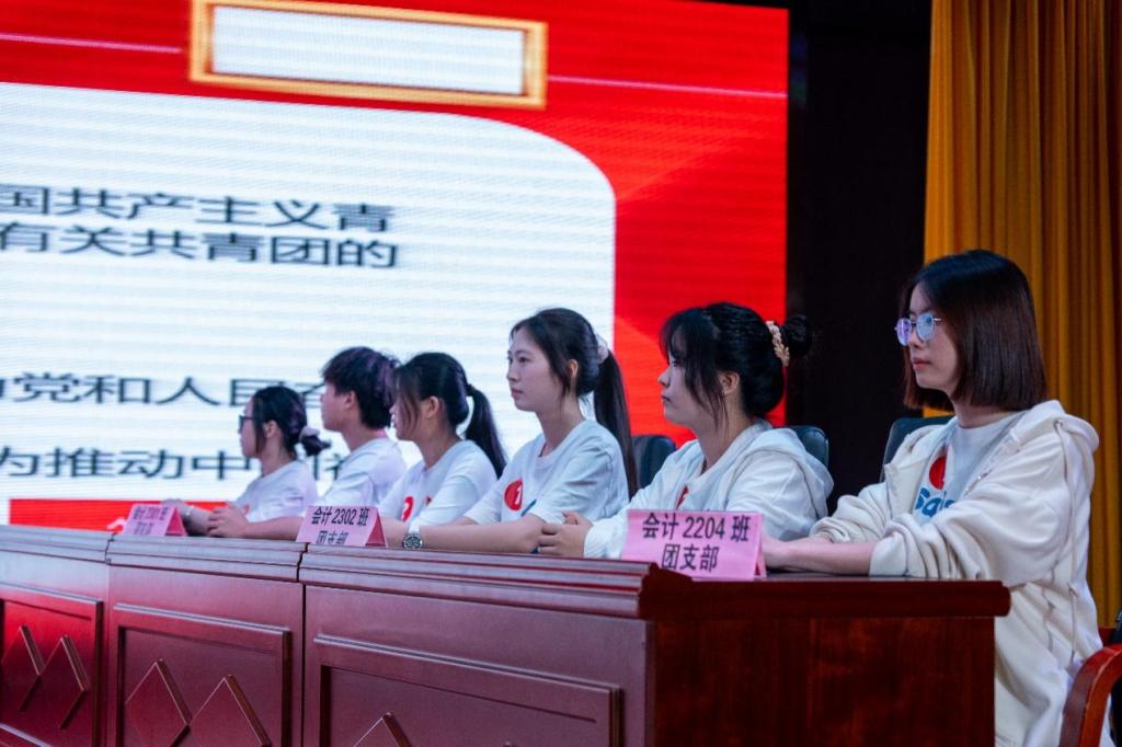 “我们是五月的花海,用青春拥抱时代”,在团史知识竞赛的现场,一首《光荣啊,中国共青团》在多功能报告厅响起,进入决赛的参赛队伍在歌声中就位,开始轮流答题和快速抢答,各支队伍功底扎实、配合默契、回答迅速,呈现出团结协作、奋勇争先的精神风貌。在“以赛促学”的氛围中,同学们的团史知识水平和凝聚力得到进一步提高。