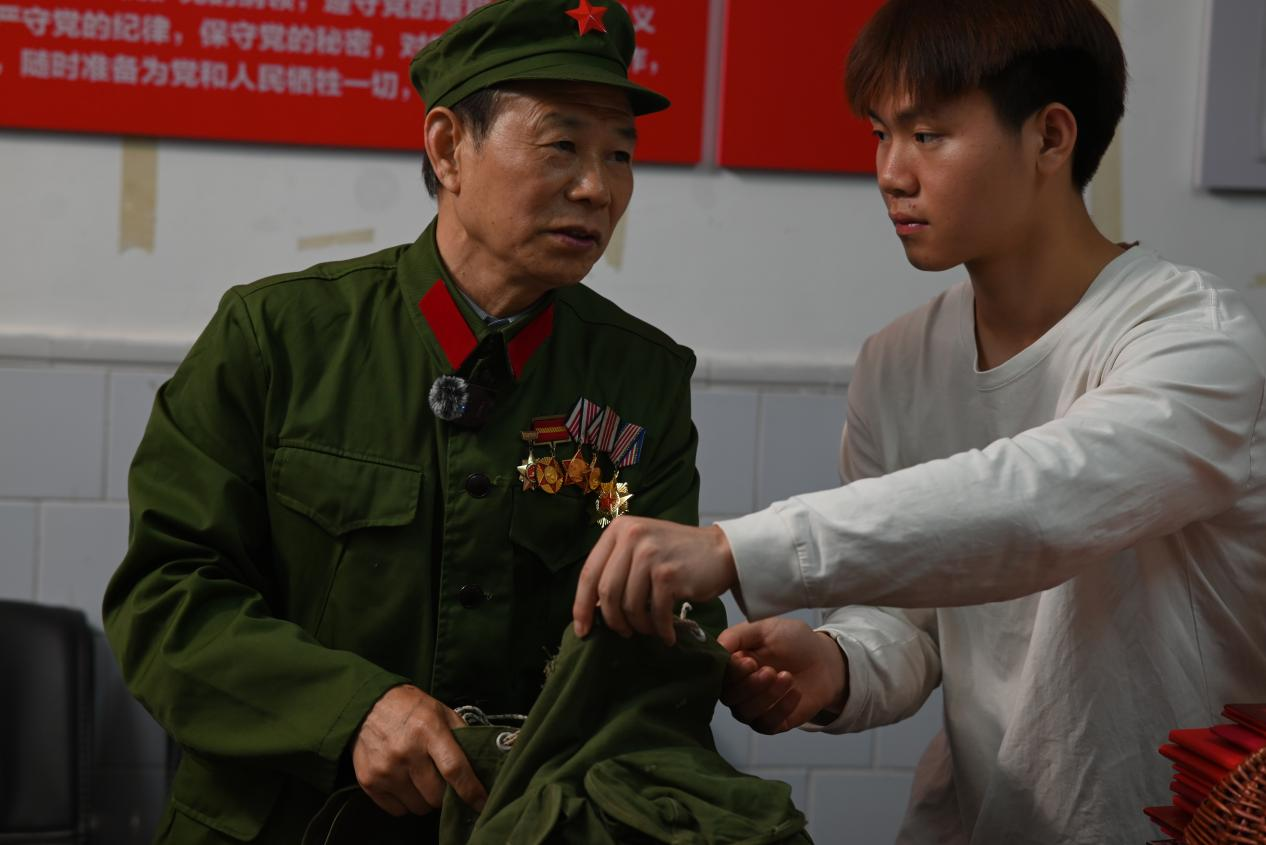 讲座结束后,徐老身着军装为学生讲述过去的故事