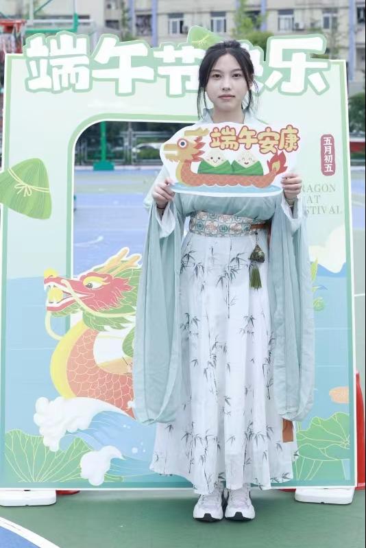 汉服社成员为全校师生送上端午祝福