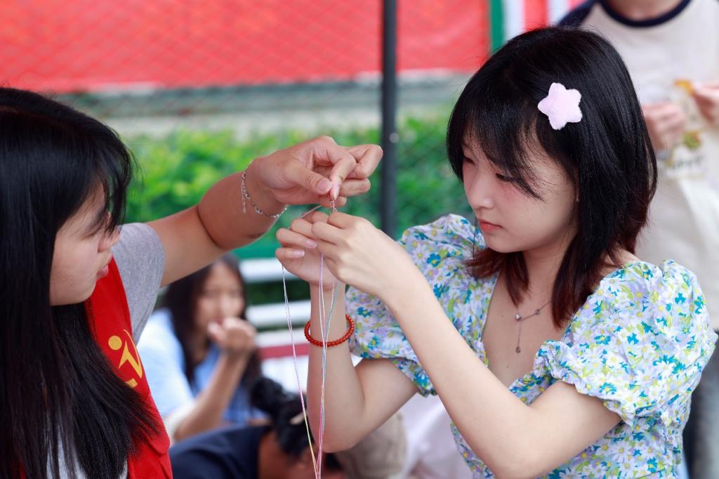 学生现场编织传统五彩绳