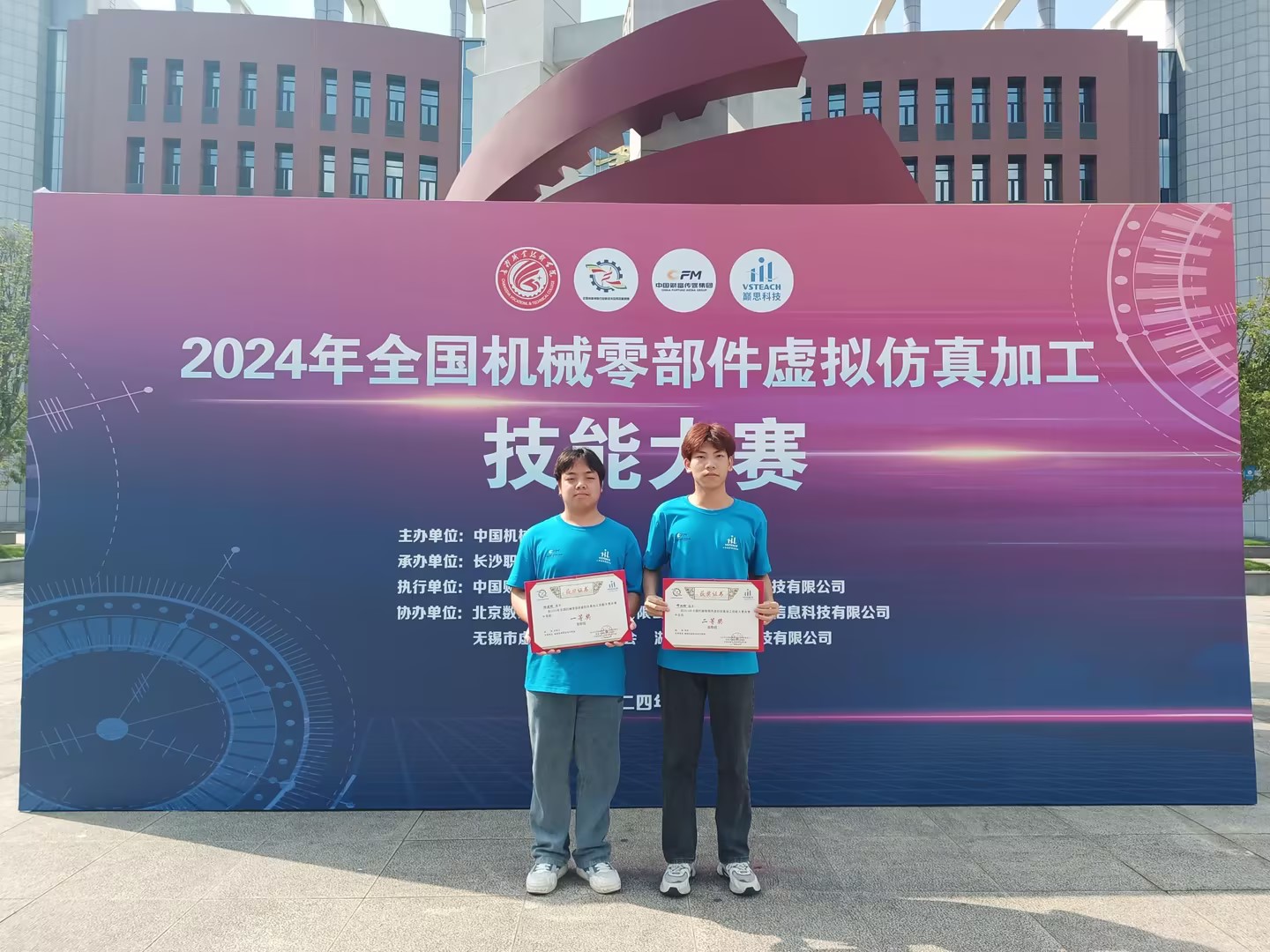 6月14日至16日,2024年度全国机械行业职业教育技能大赛“全国机械零件部件虚拟仿真加工技能大赛”在长沙职业技术职业学院举行。来自全国各地的58支中职、高职参赛队伍同台竞技。经过激烈角逐,best365官网学子胡建明、邓湘柳以娴熟的操作水平、良好的心理素质和现场表现,分别荣获高职组全国一等奖、二等奖。