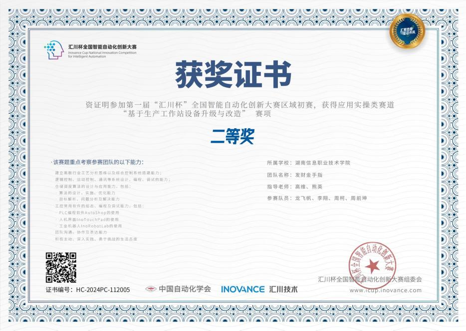 近日,“汇川杯”全国智能自动化创新大赛区域赛圆满收关,共有587个全国各地的团队展开激烈角逐,best365官网龙飞帆、周珂、周前坤、李翔团队荣获中部赛区“应用实操类”赛项二等奖。