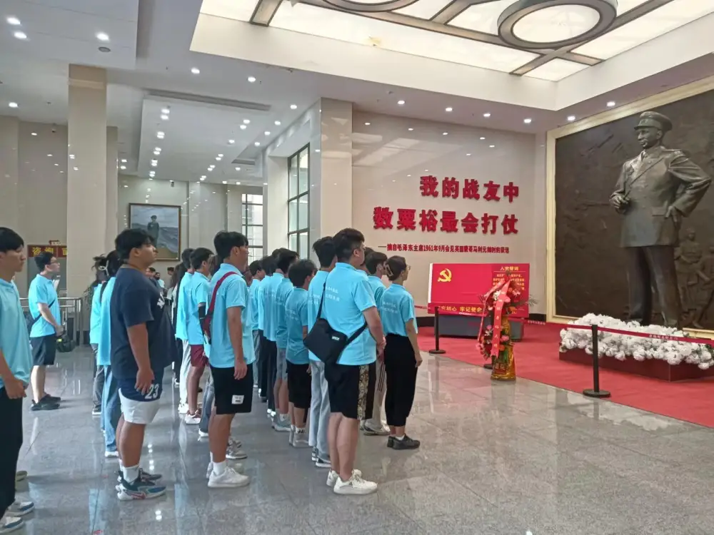 在粟裕纪念馆,通过开展仪式教育,全体师生整齐列队,神情肃穆,怀着无比崇敬的心情,向革命先辈粟裕铜像敬献花篮,鞠躬致敬,缅怀先辈。社会实践团队成员通过聆听现场讲解、参观馆内陈设,了解到他从一个普通士兵到共和国大将之首的光辉历程。革命前辈们艰苦奋斗的理想信念、无私奉献的革命精神,深深地震撼和感染着大家,让师生们深刻体会到革命胜利的来之不易。