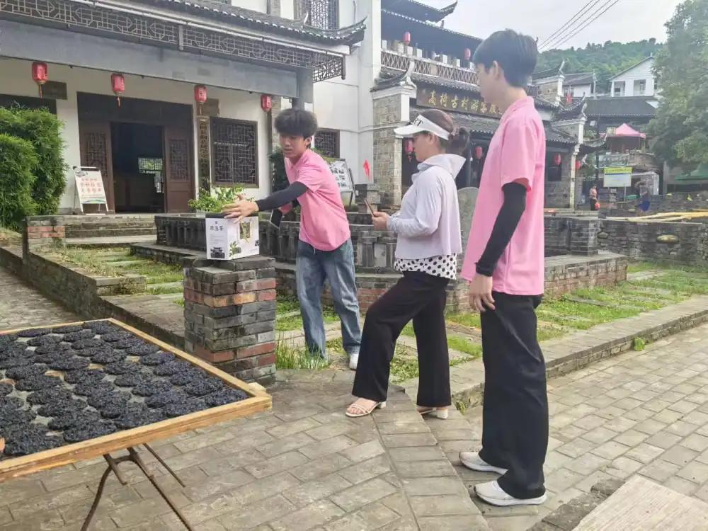 家家户户晾晒在外的黑泡茶,构成高椅古村一道靓丽的风景线。“三下乡”社会实践团队的电商专业师生通过实地走访,对高椅古村农产品黑泡茶的生产、加工、销售、物流等各个环节进行了深入调研,并与当地农村合作供销社深入交流,了解产业发展情况。同时,群策群力,积极参与到该农产品的包装设计、品牌推广等环节的讨论,为黑泡茶产业发展提供切实可行的营销方案。