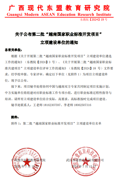 第二批“越南国家职业标准开发项目”立项建设单位的公示通知文件