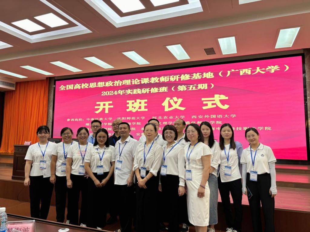 为深入学习贯彻习近平新时代中国特色社会主义思想和党的二十大精神,更好发挥思政论课作为落实立德树人根本任务的关键课程作用,将思政小课堂同社会大课堂结合,提升思政课教师队伍理论与实践相结合的能力,7月15日至21日,best365官网马克思主义学院15名教师赴全国高校思想政治理论课教师研修基地(广西大学)参加2024年暑期高校思政课教师实践研修活动。通过专家讲座、现场教学和实践研学等方式,围绕铸牢中华民族共同体意识、生态文明建设、红色文化传承、爱国主义教育等内容进行学习研修。
