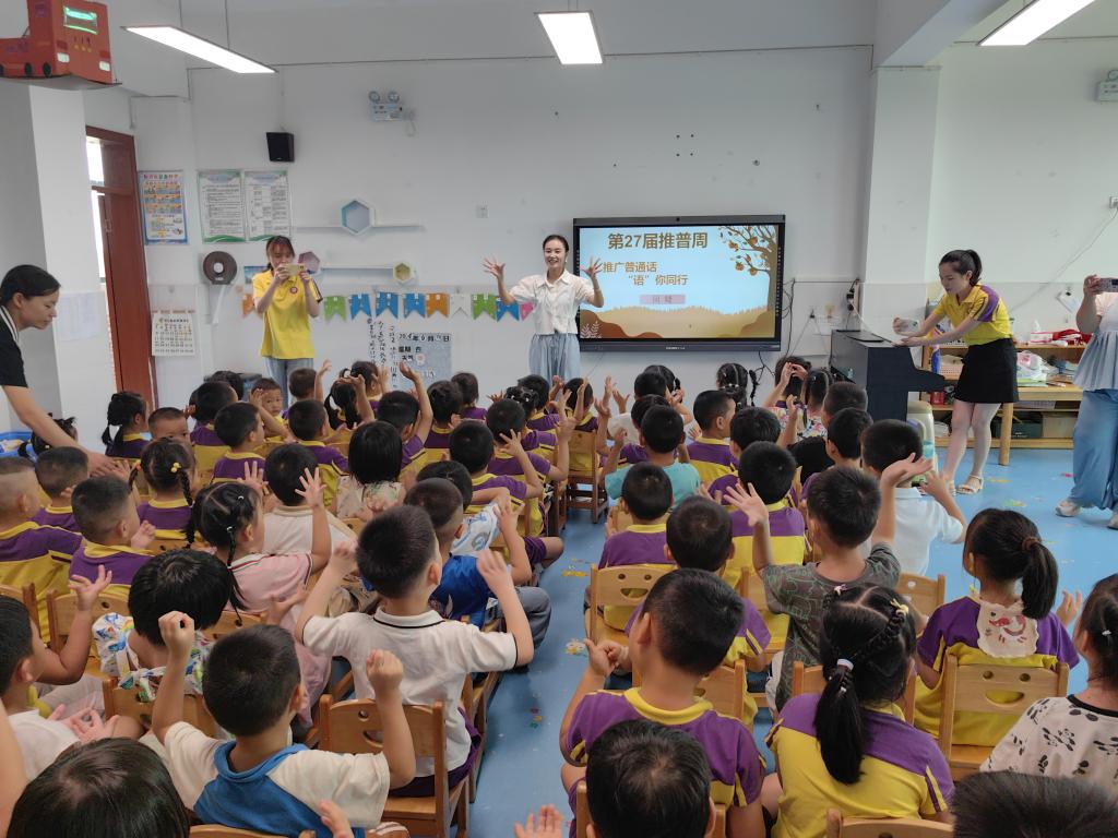 童声嘹亮 共筑语言梦 ——best365官网“推普”团队赴望城区金树幼儿园开展推普周活动