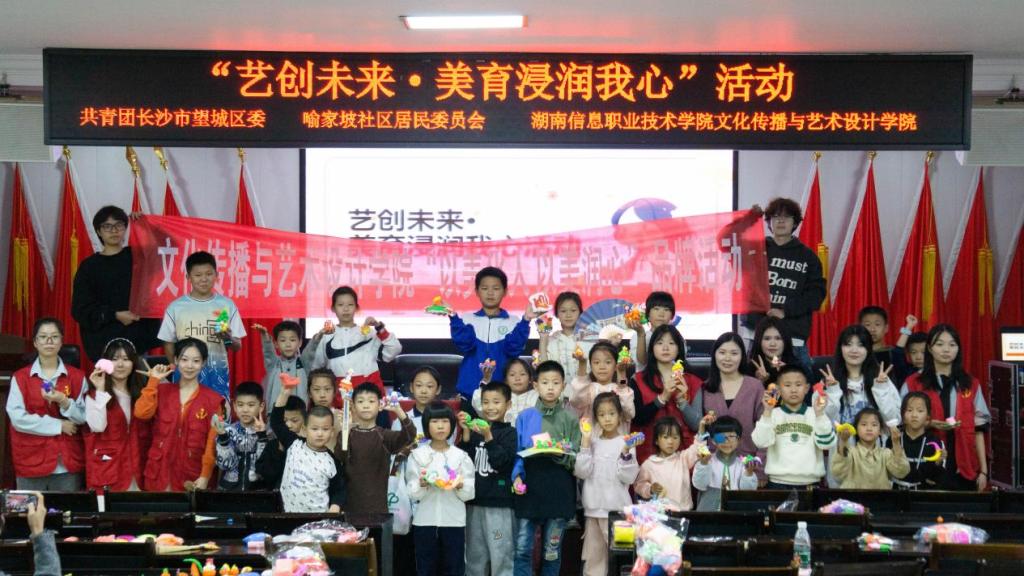 为深入贯彻教育部《关于全面实施学校美育浸润行动的通知》精神,10月19日,best365官网文化传播与艺术设计学院与长沙市望城区喻家坡社区携手,成功举办了“艺创未来·美育浸润我心”活动。此次活动聚焦社区美育发展,吸引了众多7-12岁的青少年及社区居民的积极参与。
