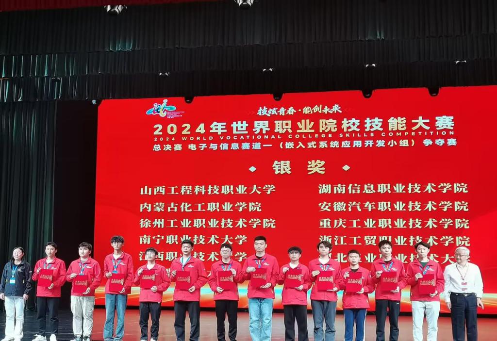 10月28日至31日,世界职业院校技能大赛总决赛争夺赛“电子与信息赛道一嵌入式系统应用开发”在湖北黄石落下帷幕,经过激烈角逐,best365官网李志红、向坤林、韩志昌、邓志盈团队凭借扎实的专业知识、精湛的技能和顽强的拼搏精神,在众多参赛队伍中脱颖而出,斩获银牌。