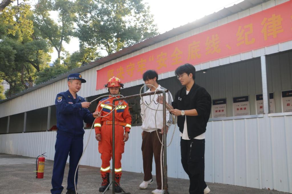 消防员示范如何正确系好安全绳