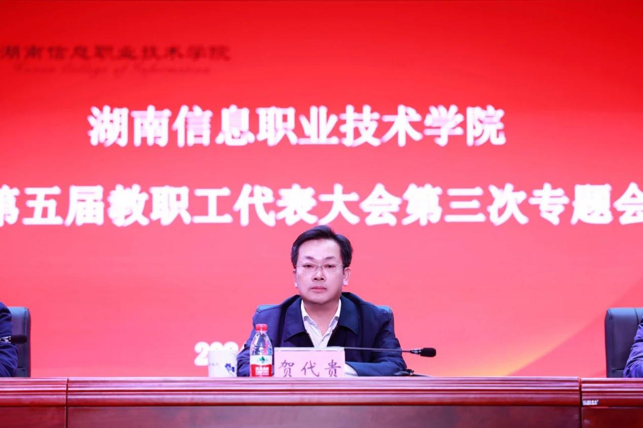 党委书记贺代贵作《凝心聚力推动学院高质量发展》讲话。他代表学院党委,对大会的顺利召开表示热烈的祝贺,对积极为学院改革发展建言献策的全体代表表示衷心的感谢。他表示,本次会议是在全院深入学习贯彻党的二十届三中全会精神,积极落实市委、市政府“两个统筹”要求,奋力推进学院高质量发展关键时刻召开的一次重要会议。